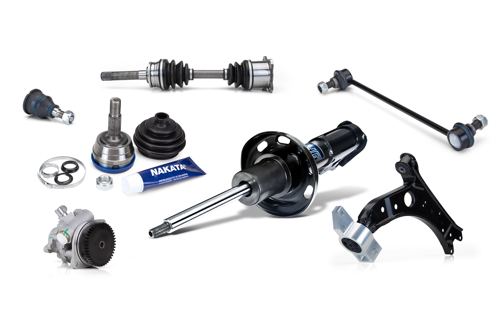 A Nakata oferece soluções em suspensão, direção, transmissão e motor para veículos leves, pesados e motos no mercado de reposição, investindo continuamente em tecnologia, qualidade, atendimento e suporte técnico especializado.
